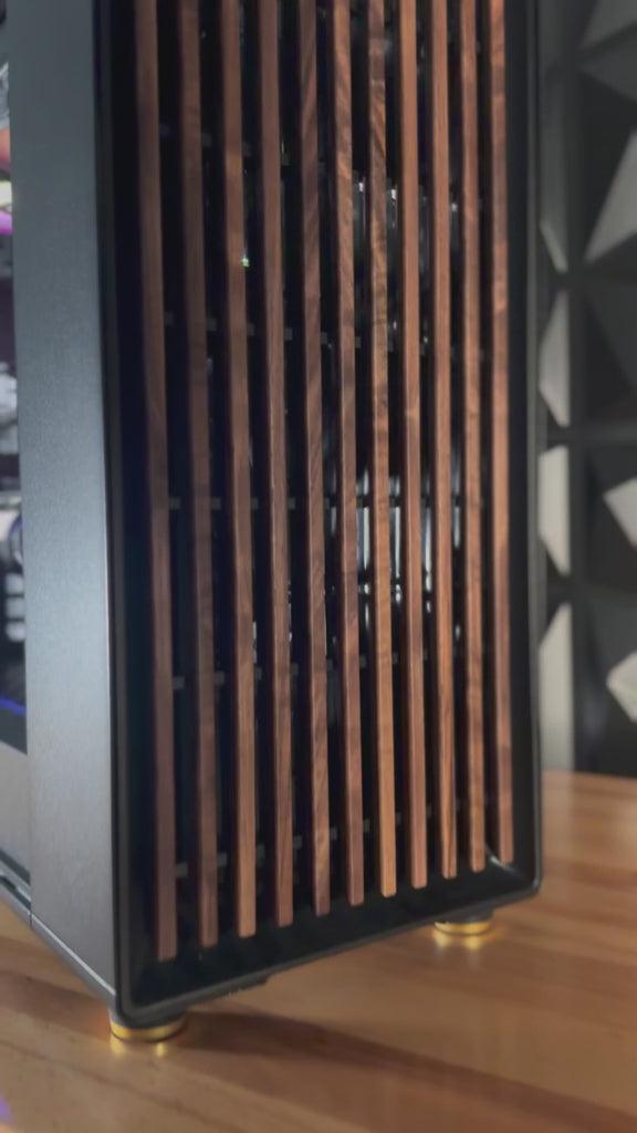 Easily mounted tempered glass side panel (TG versions only) lets you showcase your Enhance your gaming station with a real oak or walnut front, a faux leather tab and sleek steel or brass details